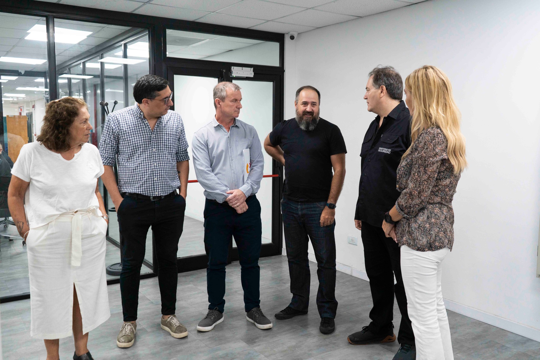 José Castro, junto al Secretario de gobierno, Matías Balsamello, la concejal Mirta Piñón y la Diputada Marcela Basualdo, en el ministerio de Seguridad bonaerense.