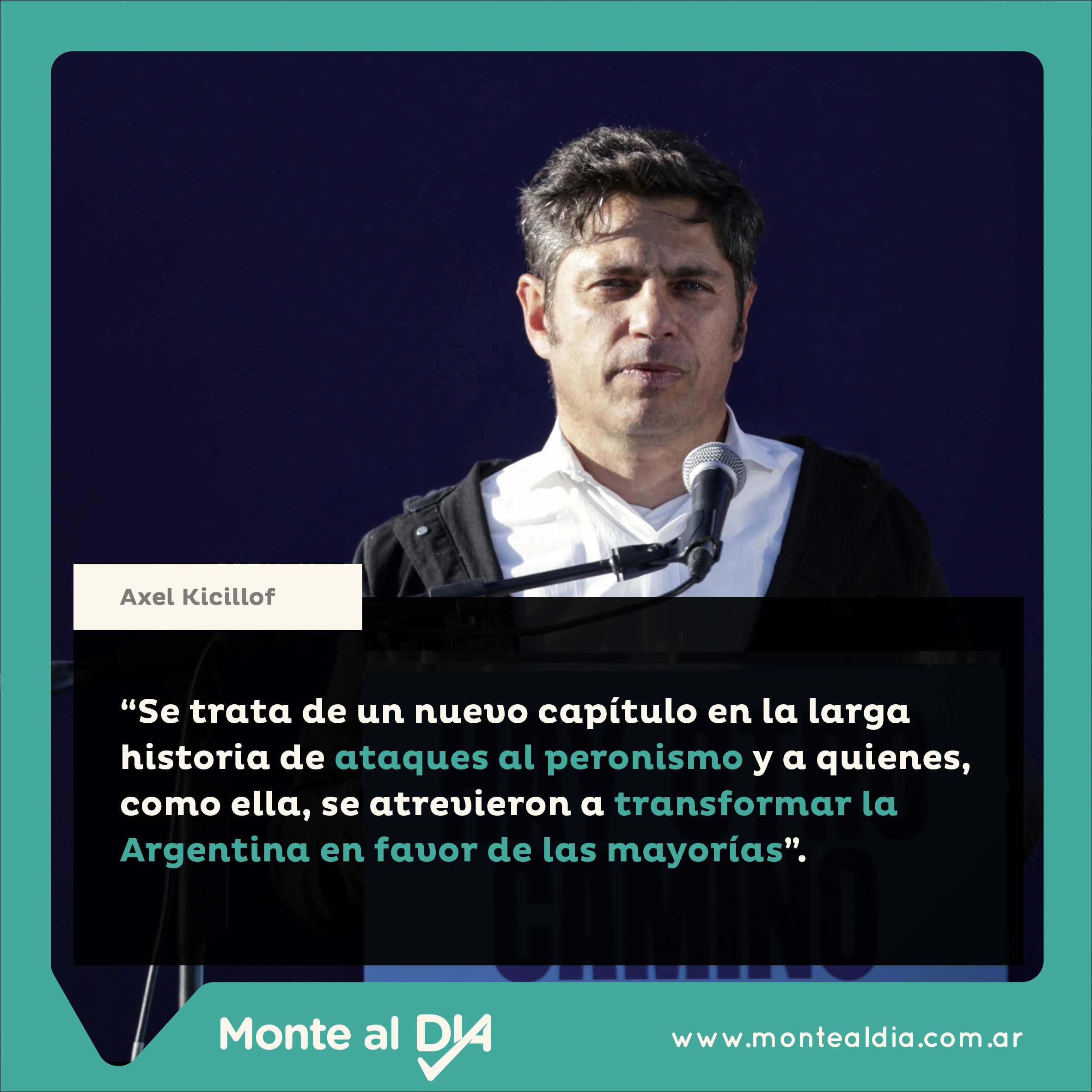 “Hoy condenan a Cristina, un final anunciado tras años de perversa persecución política, mediática y judicial. Esta condena termina de consagrar una auténtica infamia. Se trata de un nuevo capítulo en la larga historia de ataques al peronismo y a quienes, como ella, se atrevieron a transformar la Argentina en favor de las mayorías.