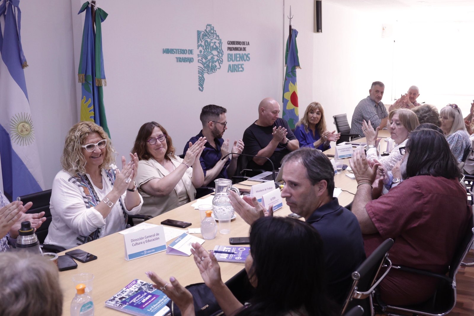 Del encuentro, que se llevó a cabo en el Ministerio de Trabajo, en La Plata, participaron el ministro de Hacienda, Pablo López; la jefa de Gabinete la cartera laboral, Cecilia Cecchini; el Subsecretario de Administración de Educación, Diego Turkenich; y los representantes del Frente de Unidad, que integran Suteba, Uteba, FEB, Sadop, AMET y Udocba.