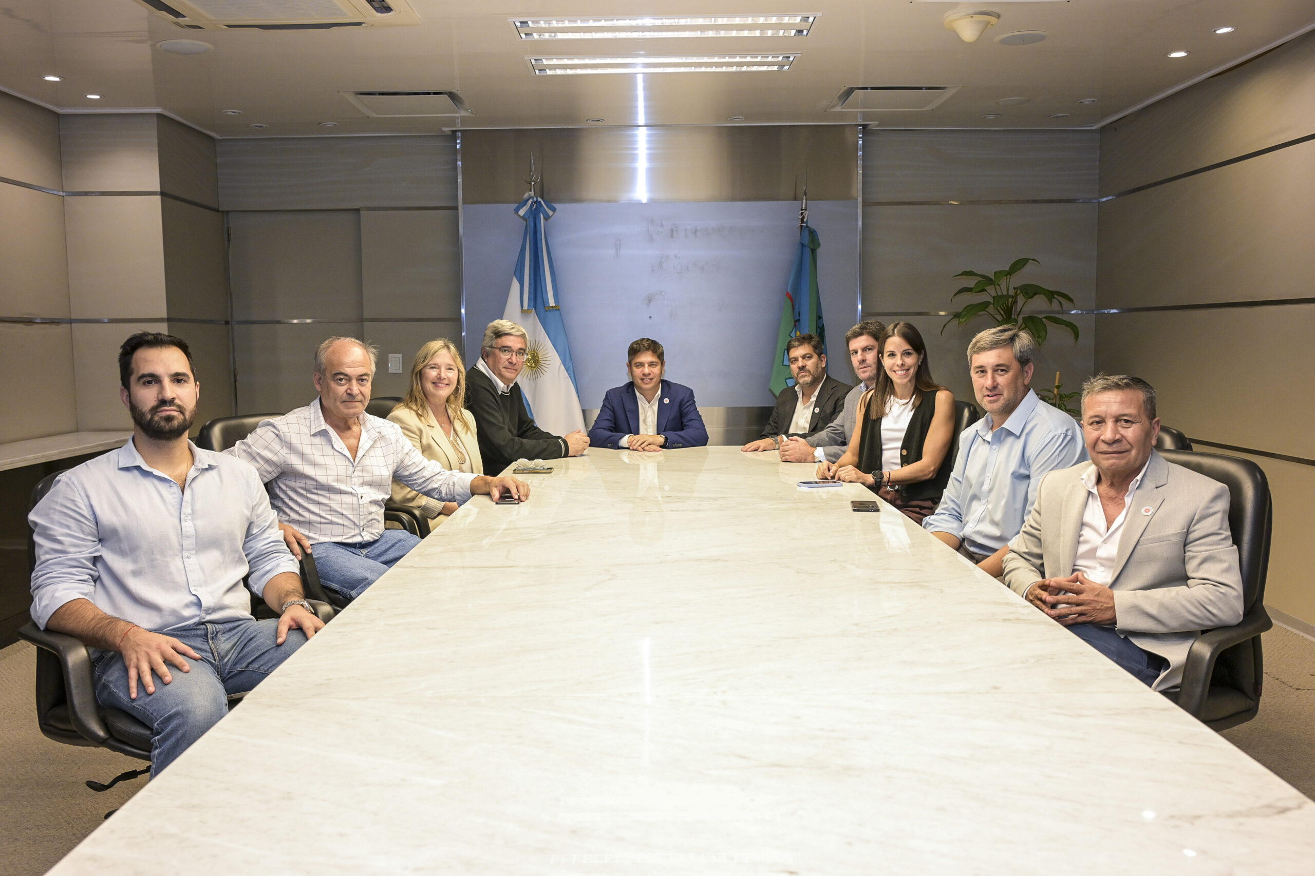 El gobernador Axel Kicillof encabezó este jueves la firma de convenios para elaborar planes directores locales de caminos rurales en nueve distritos del interior de la provincia de Buenos Aires. Junto a él estuvieron el ministro de Desarrollo Agrario, Javier Rodríguez, la jefa de Asesores, Cristina Álvarez Rodríguez, y los intendentes de Tapalqué, Chascomús, Ayacucho, Laprida, 9 de Julio, Bolívar, General Guido e Hipólito Yrigoyen.