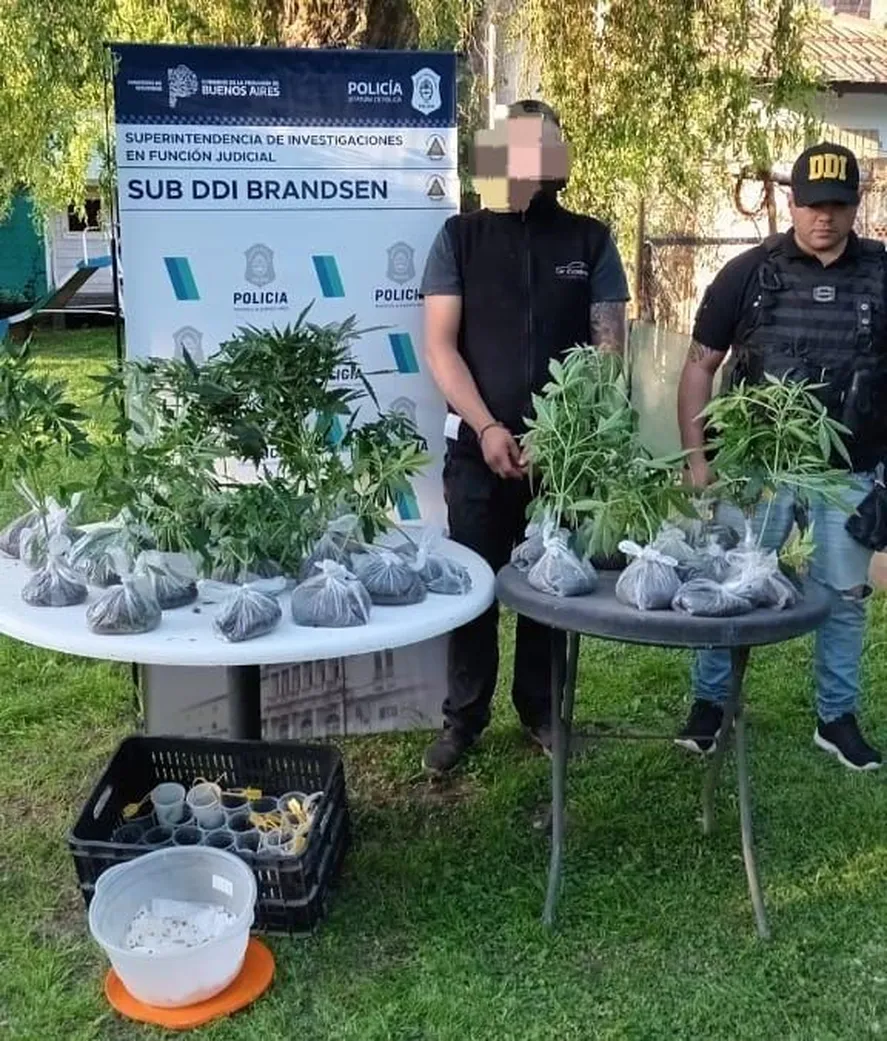 El Juzgado de Garantías N° 8 del Departamento Judicial de La Plata autorizó los registros y se procedió con el allanamiento de dos domicilios: uno en la calle Blandengues sin número y secuestraron un celular, y el otro en la calle El Zorzal al 100, donde los efectivos policiales encontraron 52 plantas de marihuana, un kilo de picadura de marihuana, un frasco con dos litros de aceite de cannabis y dos balanzas de precisión.