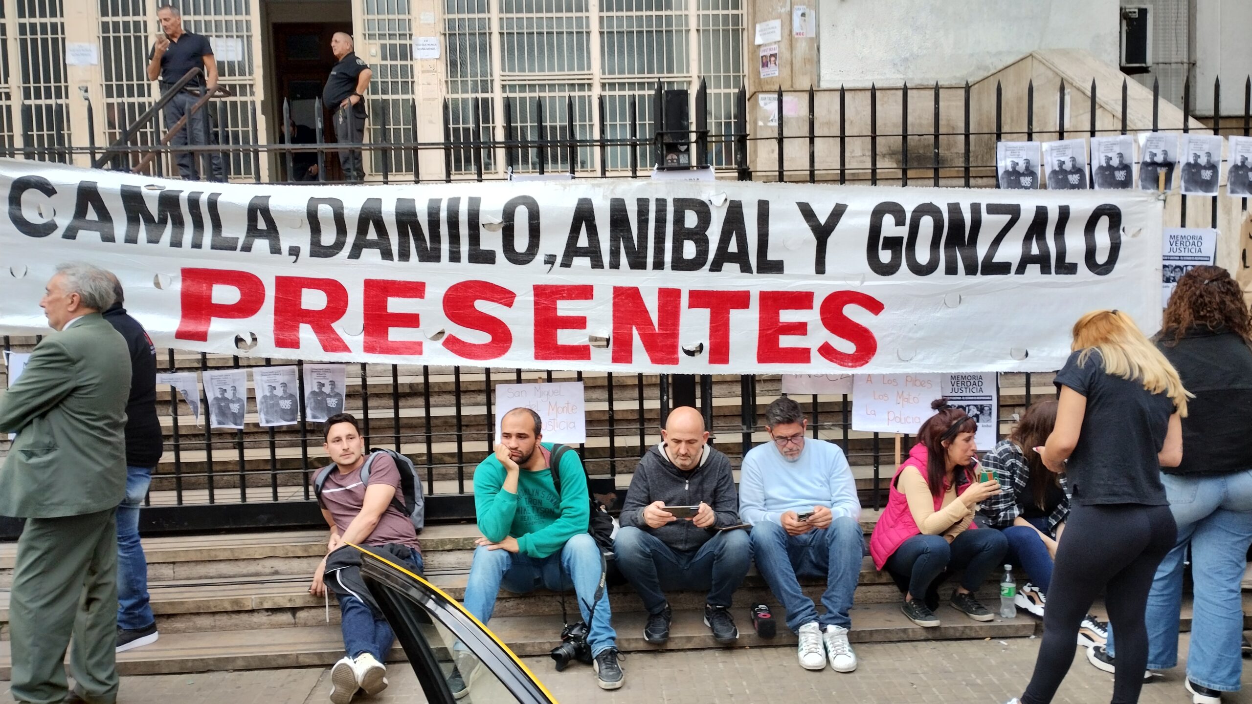 Familiares esperan y vecinos de Monte aguardan el veredicto en la puerta del TOC 4 De La Plata (Crédito Monte al Día).