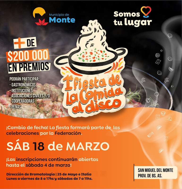 Lo cierto es que Monte sumará un nuevo evento con el objetivo de seguir posicionándose como un destino turístico “tradicional” en la región. A la Fiesta de la Federación y la Carrera Fluo se le suma la Fiesta de la Comida al Disco.