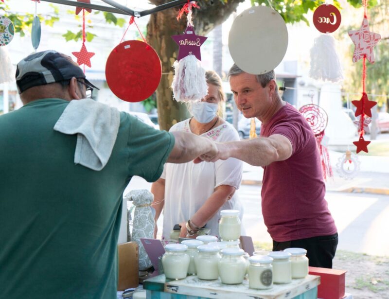 El Intendente José Castro recorre una feria en la Plaza Adolfo Alsina.