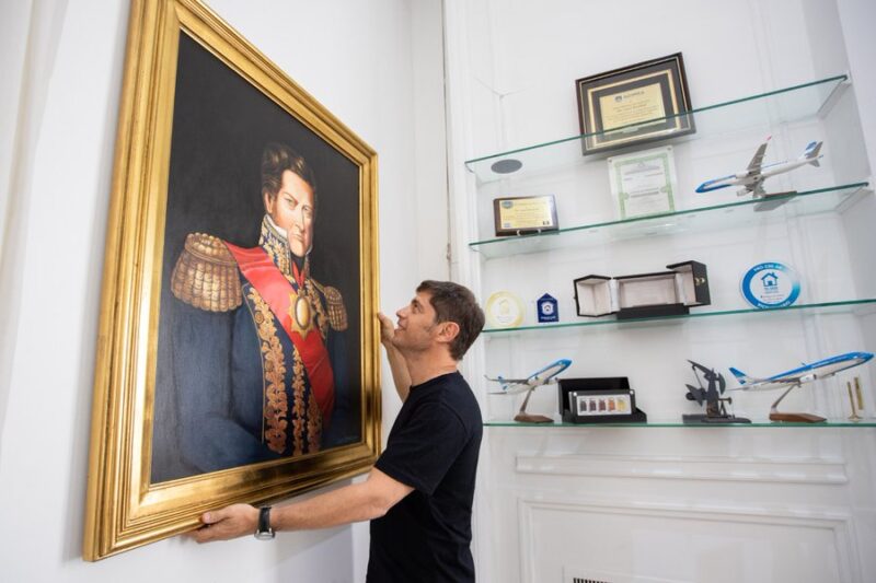 Kicillof tiene en su despacho de Casa de Gobierno una pintura de grandes dimensiones de Juan Manuel de Rosas, obsequiada por el Presidente Alberto Fernández.